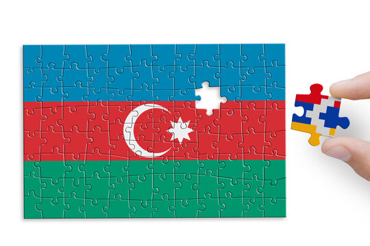 Puzzle made from Azerbaijan and Nagorno Karabah flags. Armenia and Azerbaijan conflict in Nagorno Karabakh.