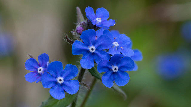 A close up view showcases the delicate beauty of blue green alkanet blossoms, highlighting the intricate details and vibrant colors of blue green alkanet in nature.