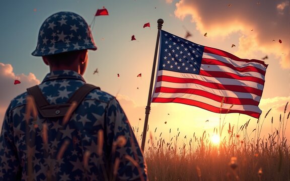 Thank you Veterans. Honoring all who served. Happy Veterans day. American flag on the back. Poster, wallpaper, background. High quality