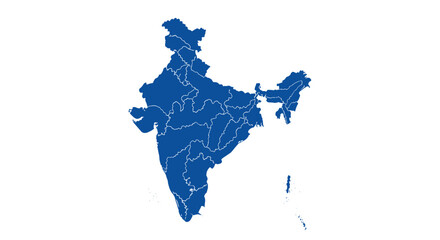 Detailed blue silhouette map of India showing all of its states and union territories, isolated on a white background.
