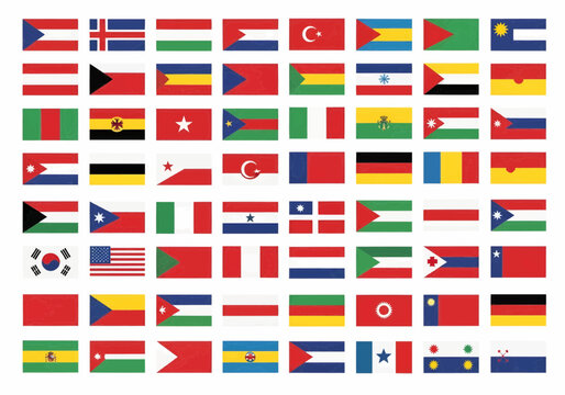 Collection of flags from countries of the whole world. Graphic has style of old video games from Fifa. Vector graphic with football vibes.