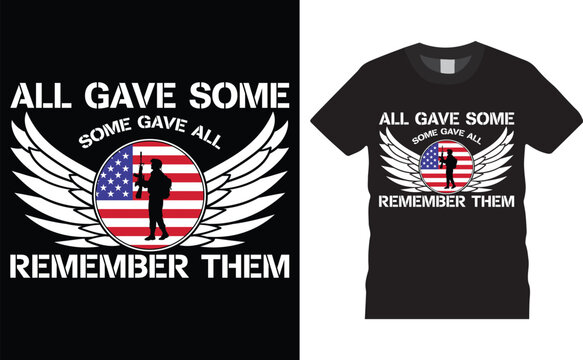 all gave some some gave all remember them Memorial day t shirt design illustrator. Typography Veterans Day Vector illustration creative t-shirt design vector