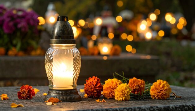 All Saints Day: Cemetery in November. Wszystkich Świętych.