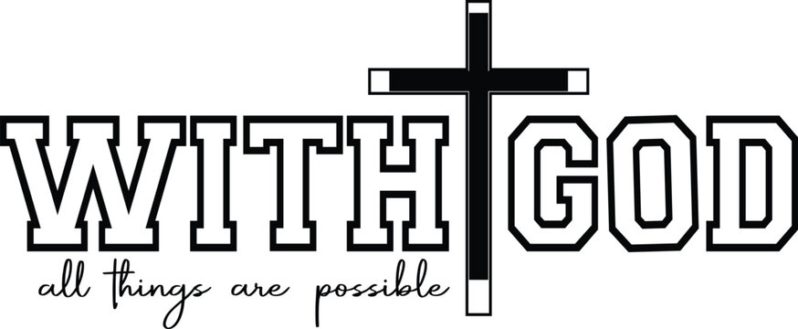 A decorative hand-lettered design featuring the inspirational religious phrase With God all things are possible.