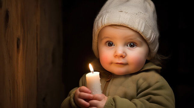 Child holding a candle, Innocence and Hope concept background, generative ai
