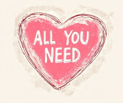 a sign that says all you need is love on a pink background with lots of red hearts scattered around it and the words all you need is love written on it.