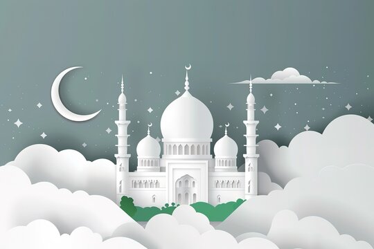Eid mubarak greeting with background, Elegant element design with paper art style for design template, place for text greeting card for happy eid mubarak.