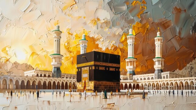 Holy Kaaba in Mecca, Saudi Arabia. A style in oil painting and brush