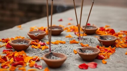 India, Uttar Pradesh, Allahabad, Kumbh Mela pilgrimage, Joss sticks and petals