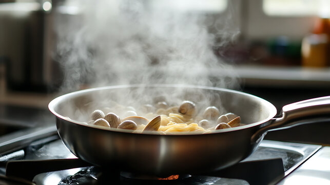 Smell the aroma of garlic and clams cooking in a pan for a midday spaghetti alle vongole (2)