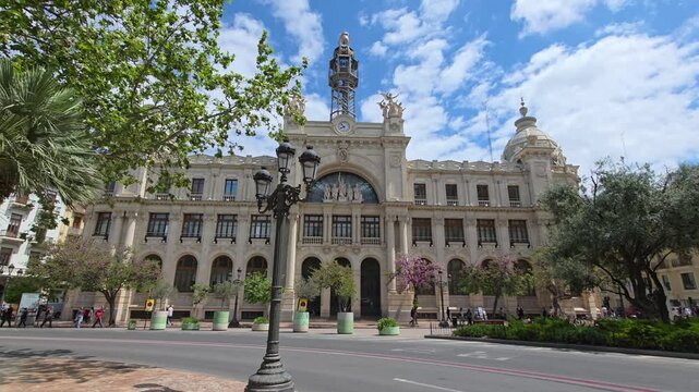 Valencia, Spain - 29 April 2025 -  The Post Office Building or Palace of Post and Telegraphs of Valencia (El Edificio de Correos o Palacio de correos y telegrafos de Valencia )