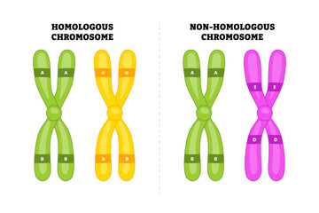 Homologous and Non-Homologous chromosomes, educational medical poster design healthcare scheme, DNA genetic material gens, eplication pairs chromosomes with same genes different alleles, centromere.