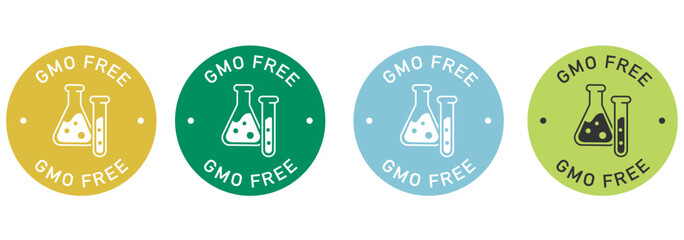 Set of vector icons of common allergens (gluten, lactose), GMO free and sugar free labels. Round stickers with food intolerance symbols for product packaging.