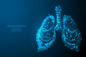Human lungs and trachea. Organ anatomy. Coronavirus pneumonia, cancer, organ transplant, tuberculosis, asthma. Innovative medical technology. 3d low poly wireframe vector illustration.