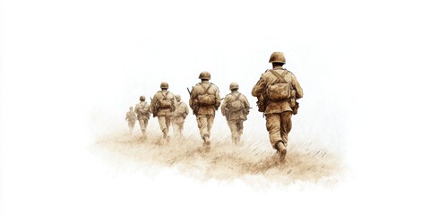 world war ii illustration, postcard with watercolor-style depicting allied troops storming the beach in soft brushstrokes, with a wide empty sand area for text