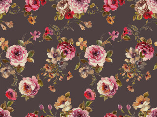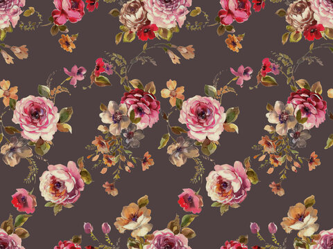 Floral pattern repeating all over the fabric, created using digital printing technology for textile design.