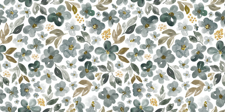 Watercolor floral in grey and brown. Seamless pattern.