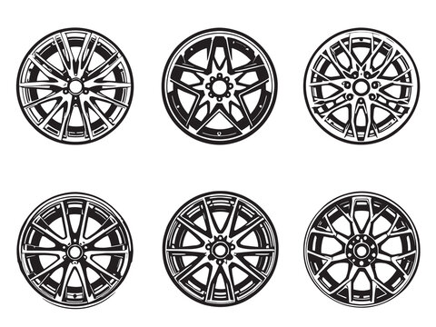 Alloy Wheels Line Art Icon Set Clear Minimalist Design