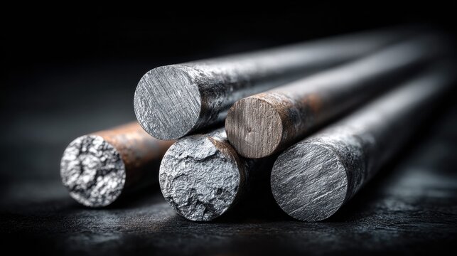 A close-up shot showcases the detail and texture of metal rods, highlighting industrial materials.