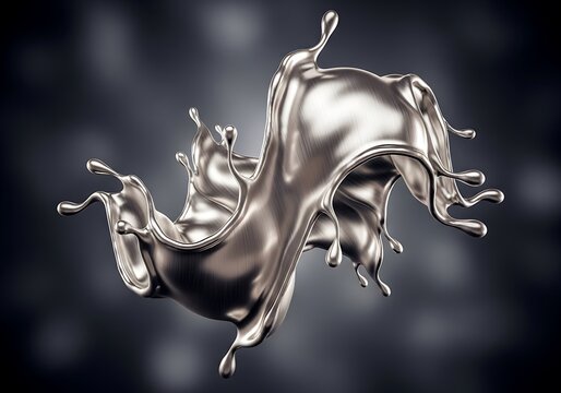 Dynamic fluid splash capturing abstract metallic elegance against a blurred backdrop  create visual allure with its