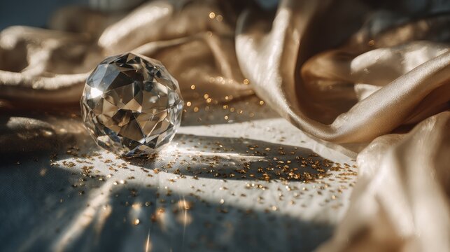 Diamond in Silk: A radiant diamond sits amidst the soft folds of silk fabric. Its facets shimmer as light plays across the surface. A symbol of luxury, elegance, and timeless beauty.