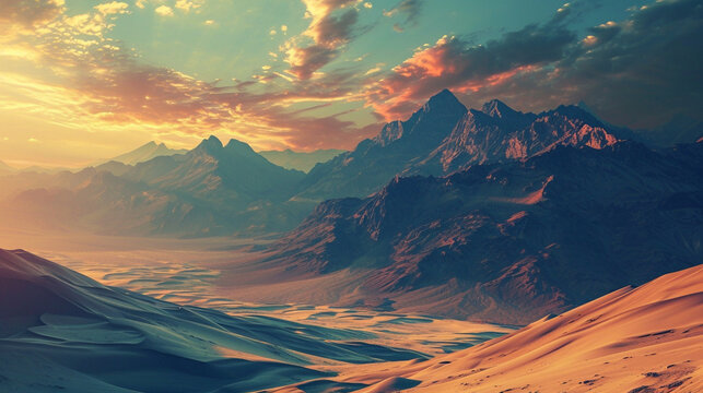 Dreamy Desert Mirage:  A desert landscape with shimmering mirages and surreal distortions, embodying the mysterious allure of a dreamy desert journey