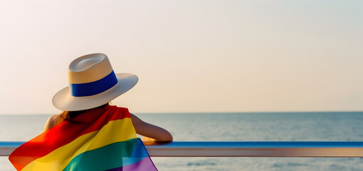 Girl wrapped in pride flag. Concept of LGBT pride. AI generated