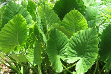 Alocasia leaves, close-up on alocasia reginula black velvet plants