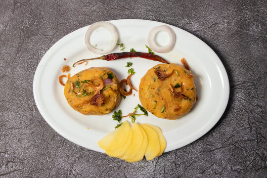 Alu or aloo bhorta shami tikki kabab served in dish isolated on background top view of bangladesh food