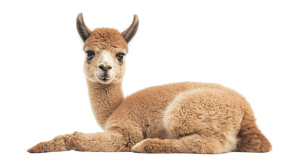 Young Alpaca Sitting on Ground Looking Forward Isolated