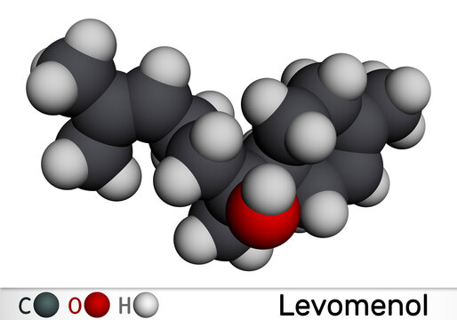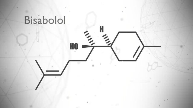 bisabolol molecular structure, 3d model molecule, levomenol, structural chemical formula view from a microscope