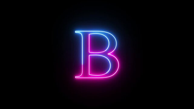Neon capital letter alphabet B animation. Purple and blue neon font letter B on black background. Educational concept