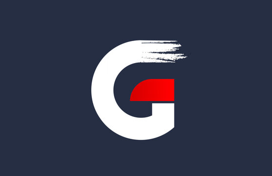 G white red blue alphabet letter with grunge brush ending for company logo icon design