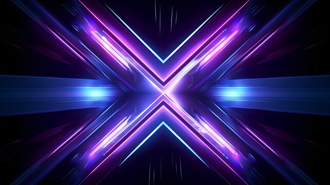 3d rendering of blue lighten X alphabet shape in front of grunge wall background