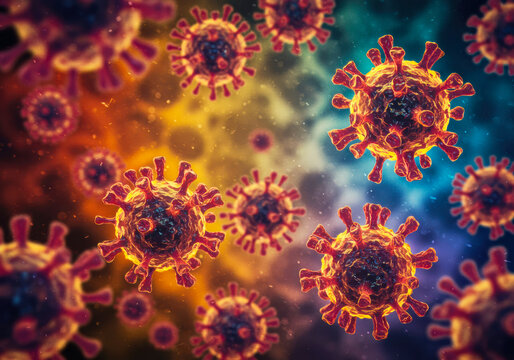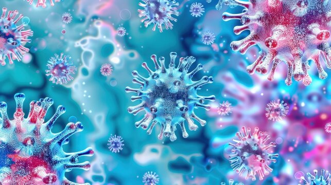 Fluorescent Virus: A Glowing Red and Pink Microbe Generative AI