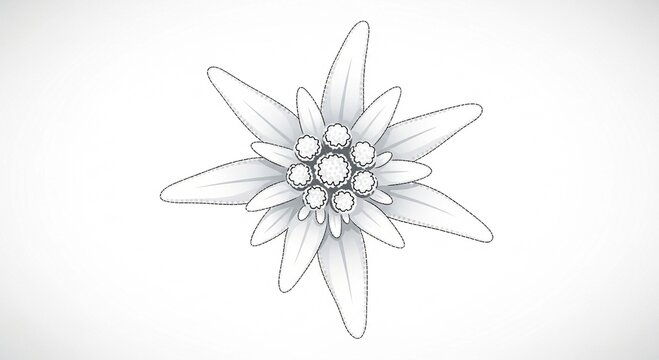 A stylized black and white line drawing of a single Edelweiss flower, isolated on a clean white background.