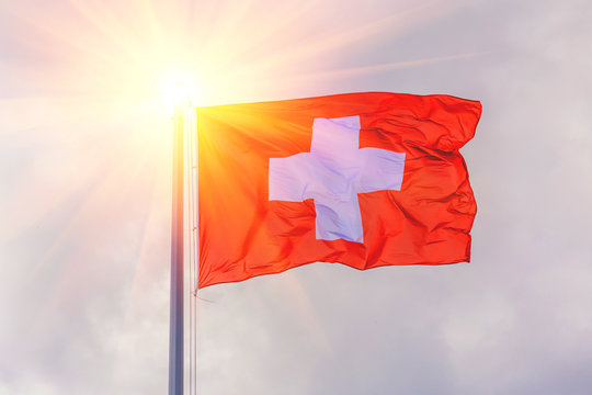 Flag of Switzerland. A red flag with a white cross on it. Swiss flag.