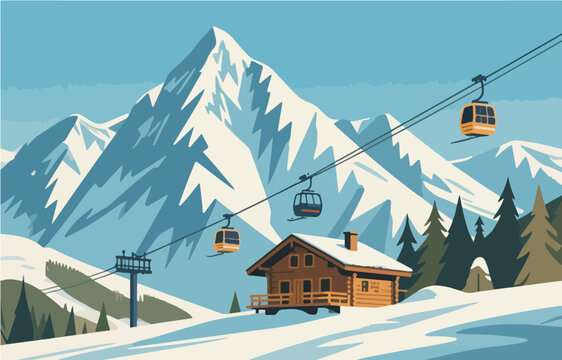 A painting of a mountain range with trees and a sky. The mood of the painting is serene and peaceful