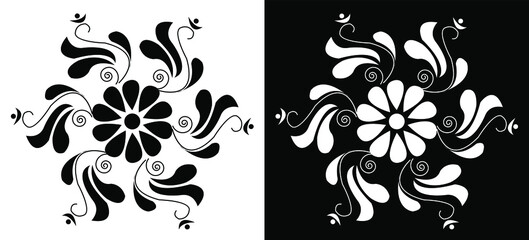 Beautiful Indian traditional and Cultural Rangoli mandala design concept of flora art isolated on black and white background