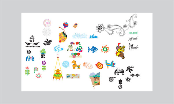 Set of Indian folk art pulli kolam. editable home decor patterns.