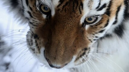 4k120 fps super slow motion video of big male Siberian Amur tiger, panthera tigris altaica in cold winter forest after snowfall , national park Leopard Land, 4k 120 fps slow motion raw video