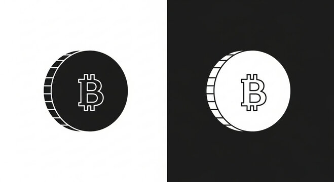Bitcoin Cryptocurrency Coin Icon in Black and White.