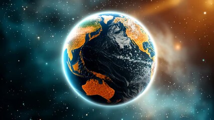 Abstract image of the earth from space with visible signs of climate change such as melting ice caps and altered weather patterns, emphasizing the global scale of environmental issues. high