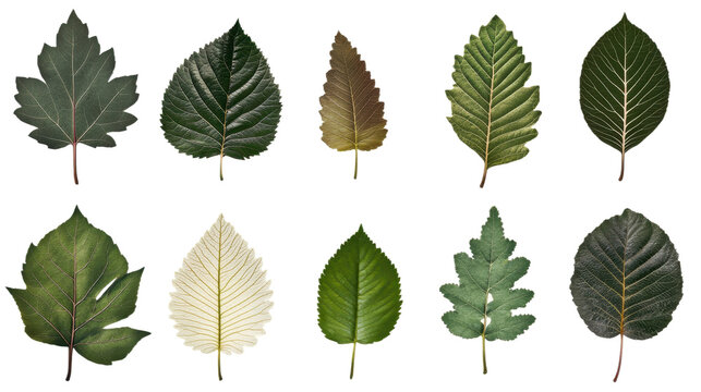 Collection of diverse leaves showcasing various shapes venation patterns and textures creating a visually rich display of nature's intricate designs and botanical variations