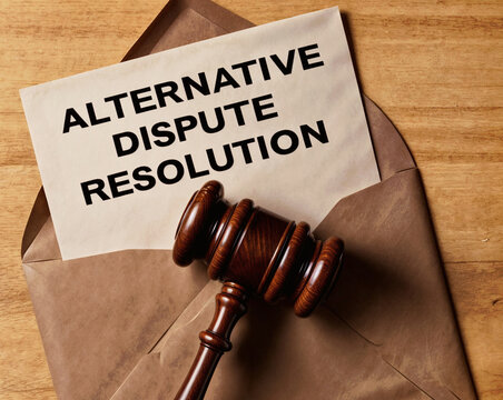 Documents with title alternative dispute resolution ADR in an office.