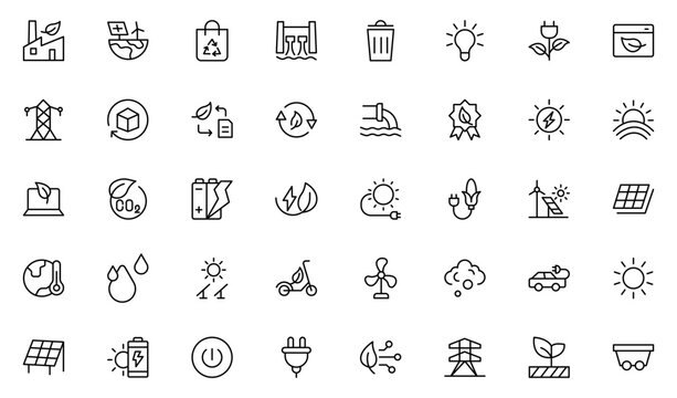 Renewable Energy Icon Set, alternative sources energy. Eco icon collection. Editable stroke. Vector illustration.Thin outline icons pack. Vector illustration. editable stroke