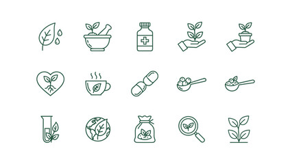 Herbal medicine filled icon set. natural remedies, plants, healing symbols collection