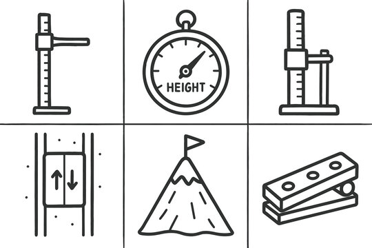 hand drawn cute doodle style isolated height gauge rod height altimeter barometer height stadiometer scale height elevator shaft height mountain peak marker height vertical sine bar