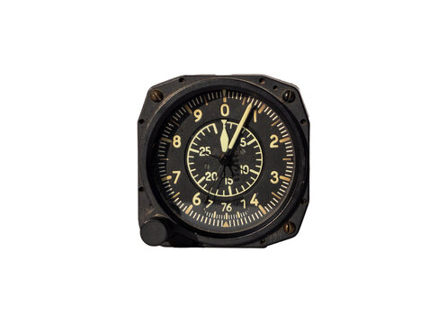 Barometric altimeter isolated on a white background. Vintage aviation height meter. Aviation military device. Height measures