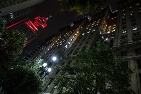 Nighttime in the center of São Paulo with lighting in the old Altino Arantes building